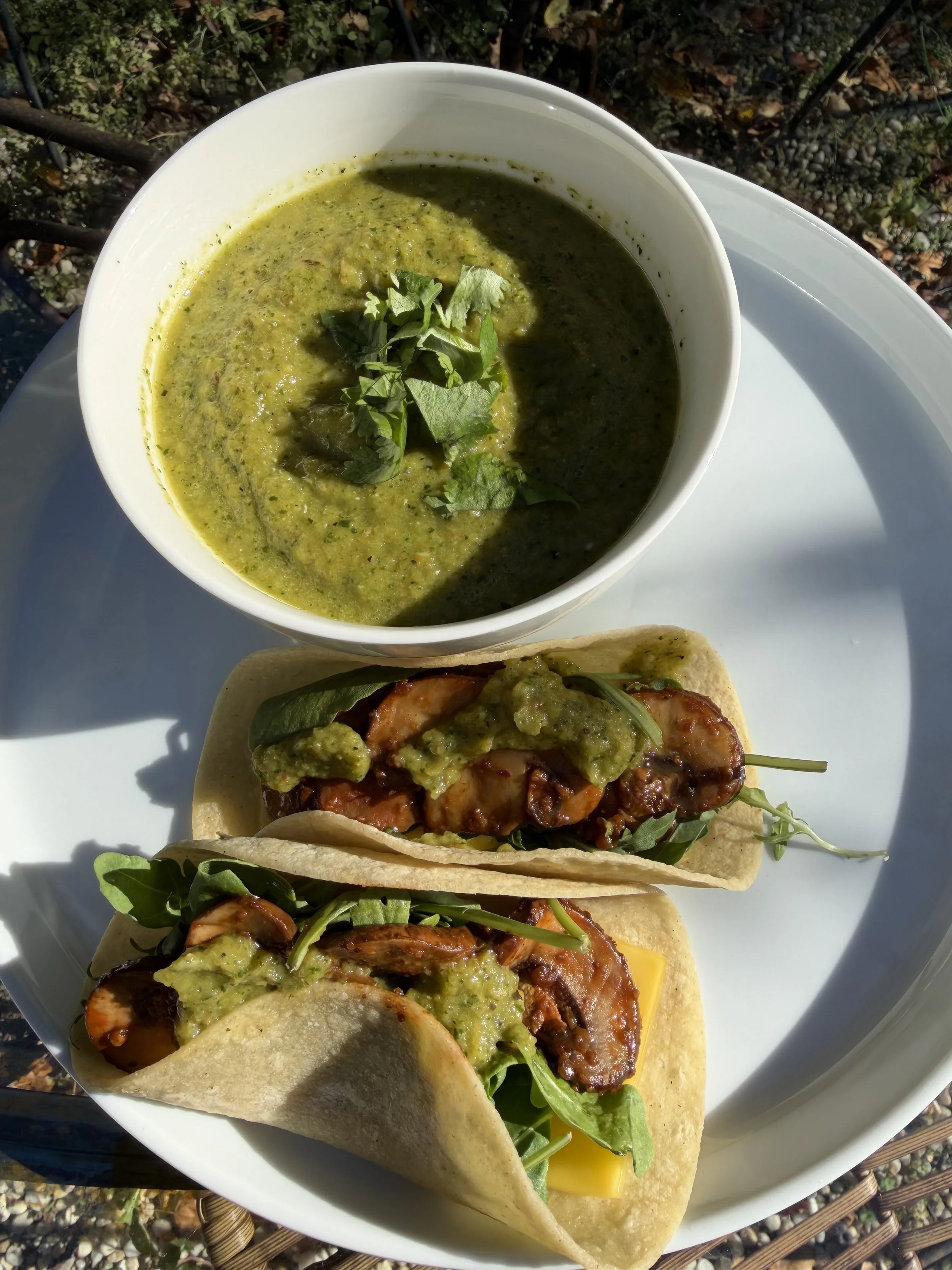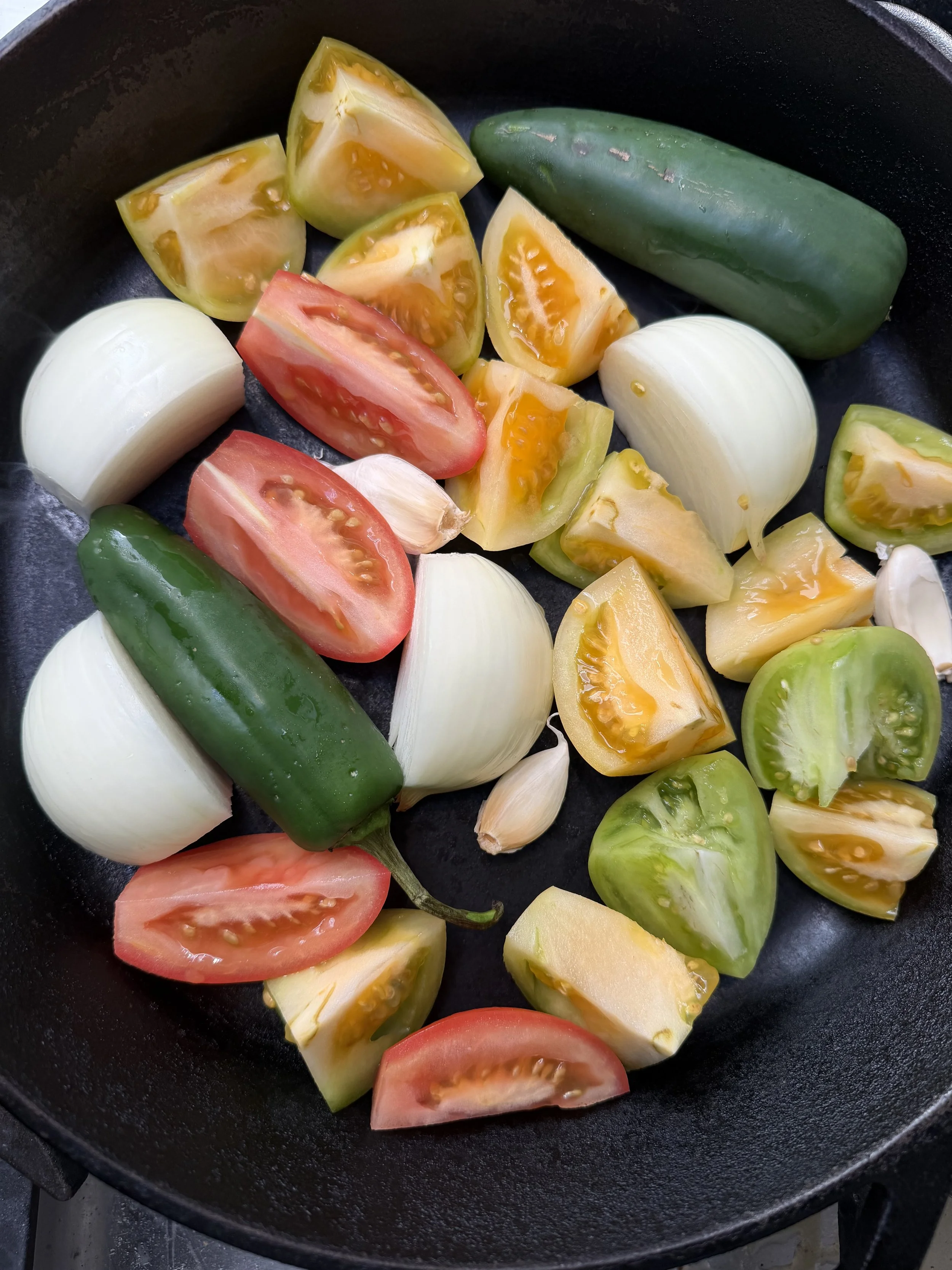 This recipe takes inspiration from traditional Mexican salsa verde, but uses green tomatoes in place of tomatillos for a unique twist. Charring the vegetables brings out a deeper, roasted flavor that balances beautifully with the zesty lime juice, fresh cilantro, and subtle heat from jalapeños or serranos. A touch of avocado gives the salsa a creamy texture, while a hint of agave softens the natural acidity of the tomatoes.