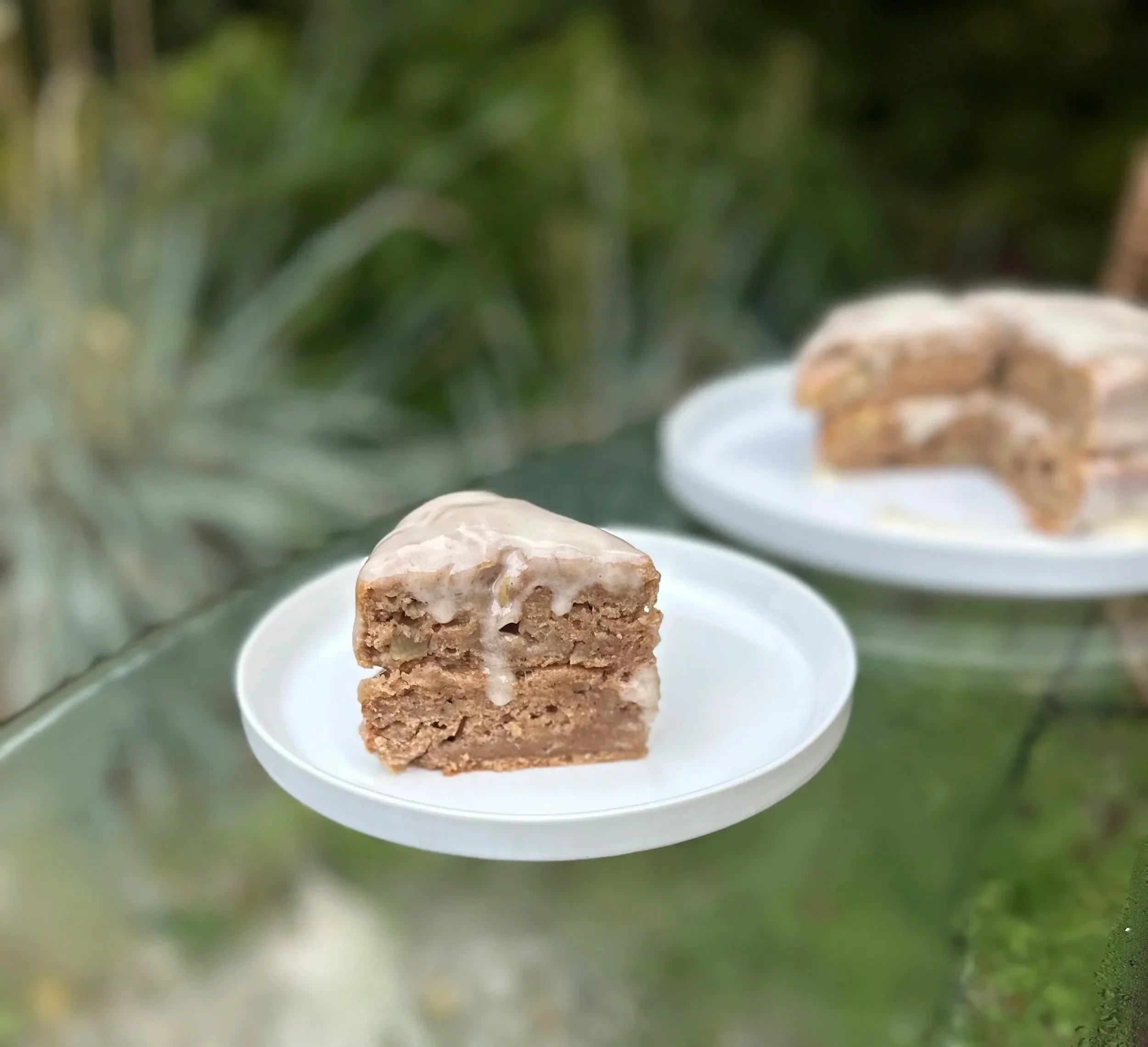 Moist and flavorful Apple Cider Cake made vegan with warm spices and seasonal apples for the perfect fall dessert.