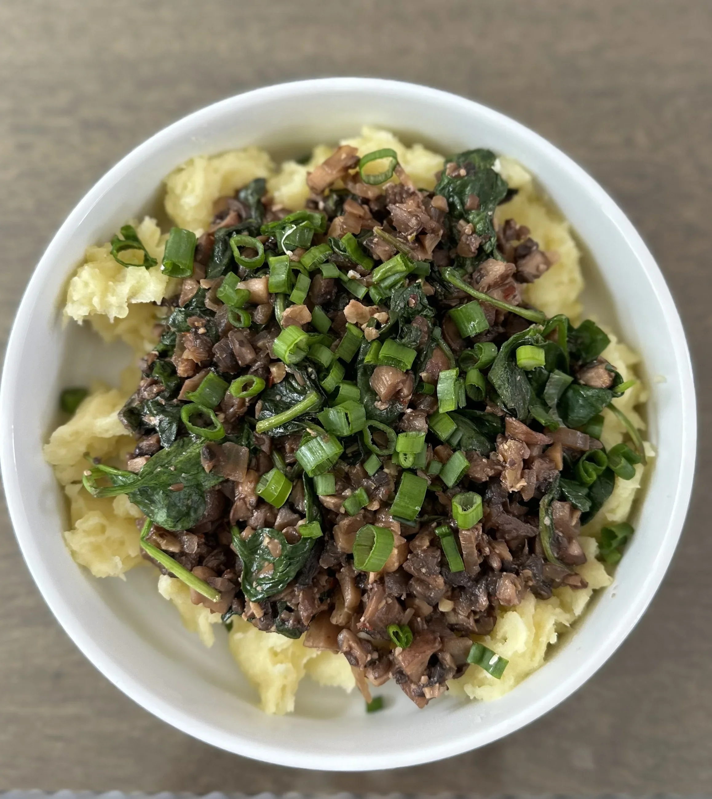 Savory Miso Mushrooms served over creamy vegan Mashed Potatoes for a hearty, plant-based comfort meal.