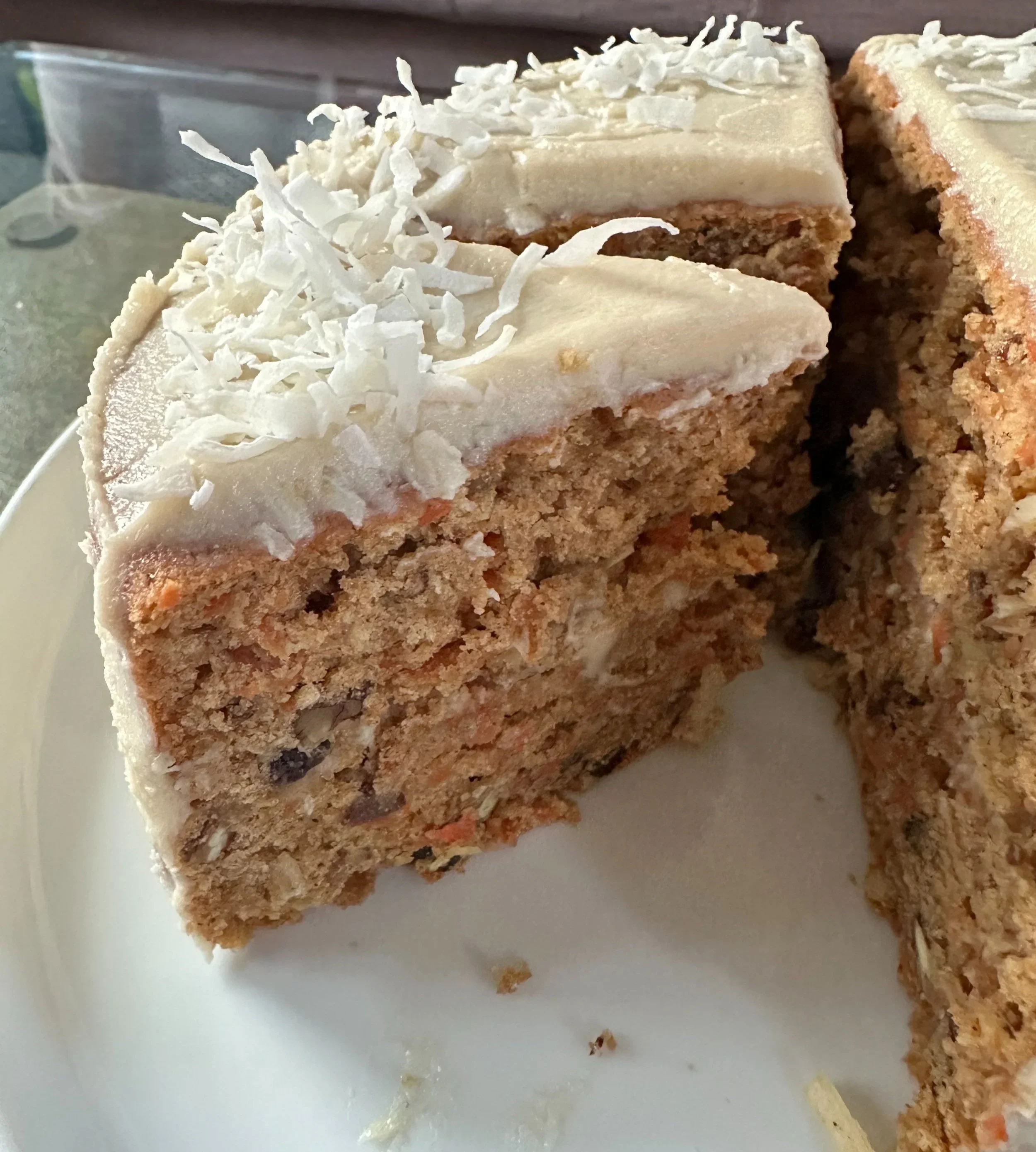 Wholesome Carrot Cake topped with dairy-free Coconut Cream Frosting for a plant-based dessert everyone will love.
