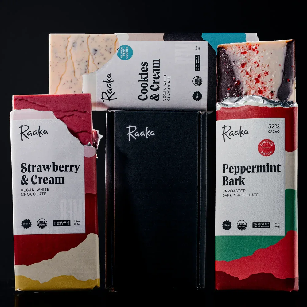 A perfect place to begin is the Raaka White Chocolate Trio, a beautifully designed tasting set that spotlights the brand’s unroasted cacao craftsmanship. Each bar takes classic white chocolate in a more sophisticated direction, with subtle flavors and a creamy, melt-in-your-mouth consistency that feels festive without being overly sweet. It’s a refined stocking stuffer that still delights like a childhood treat.