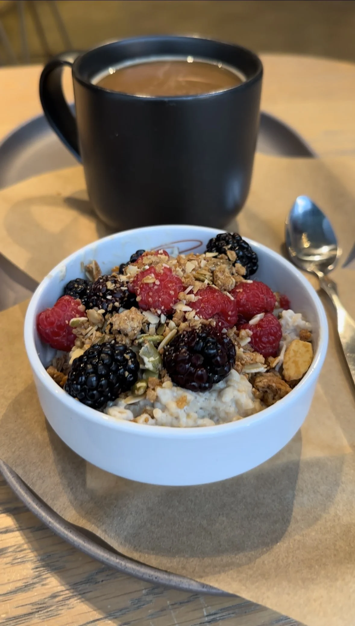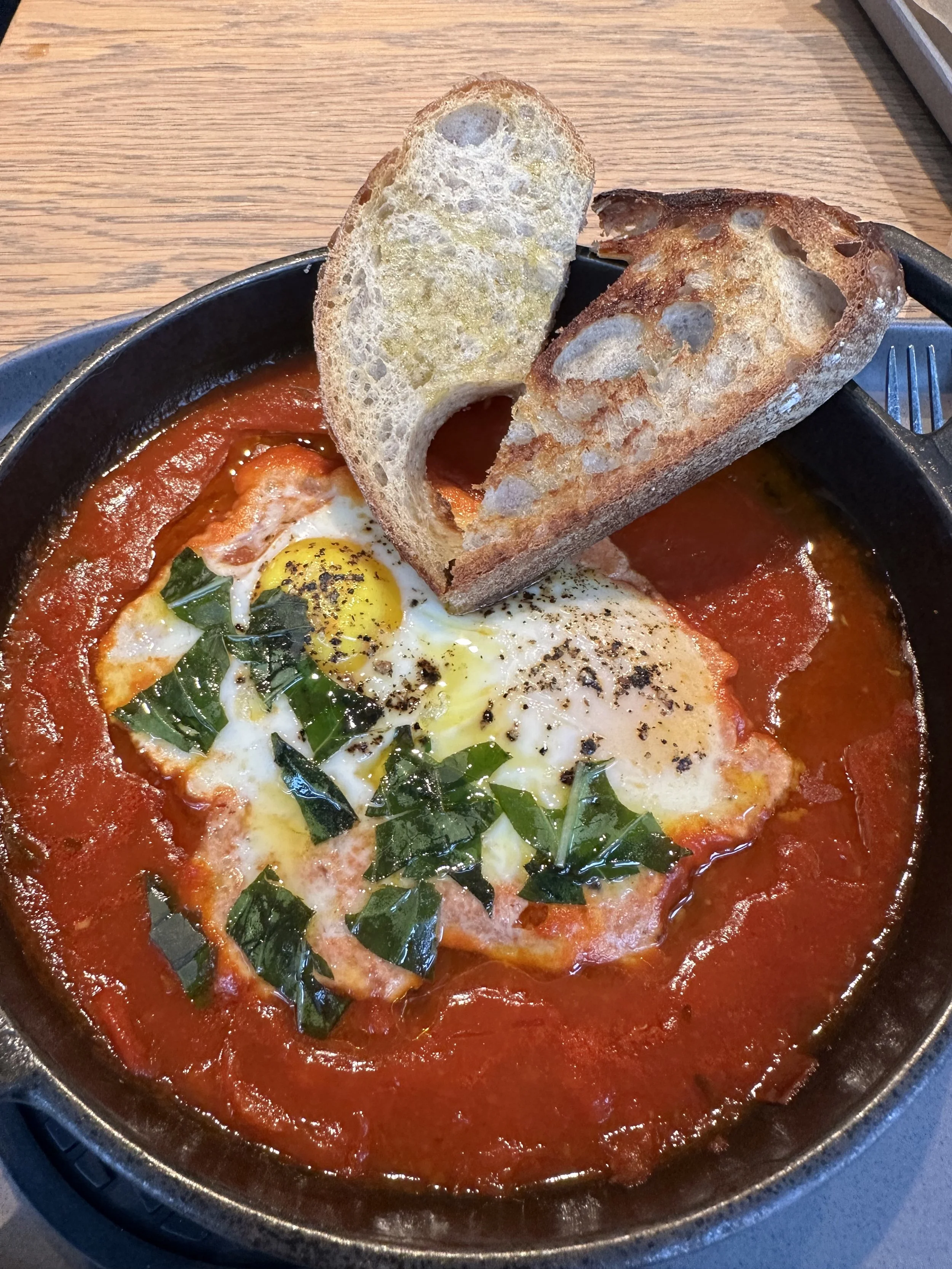 It was a work day for both my wife and myself, so we settled on the Princi Bakery and Cafe for a rather large breakfast. We ordered our go to Americano’s with oat milk, the oatmeal with berries, the shakshuka, and a couple of pastries. Everything was very tasty and the ambiance with the seating at windows elevated just over Magnificent Mile, while the snow fell made for a very nice breakfast.
