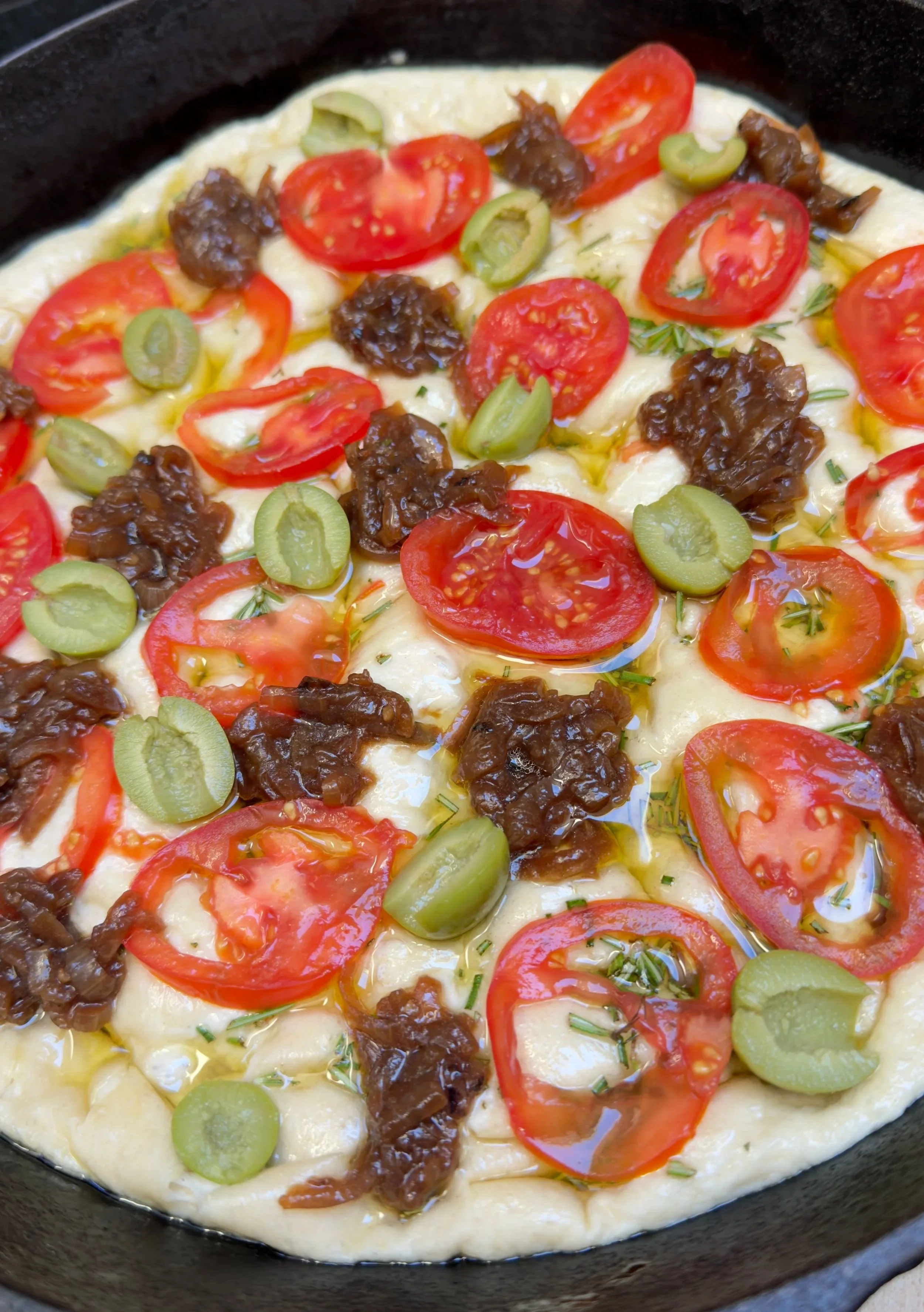 ✨ Tomato, Olive & Rosemary Focaccia with Caramelized Onion Recipe ✨