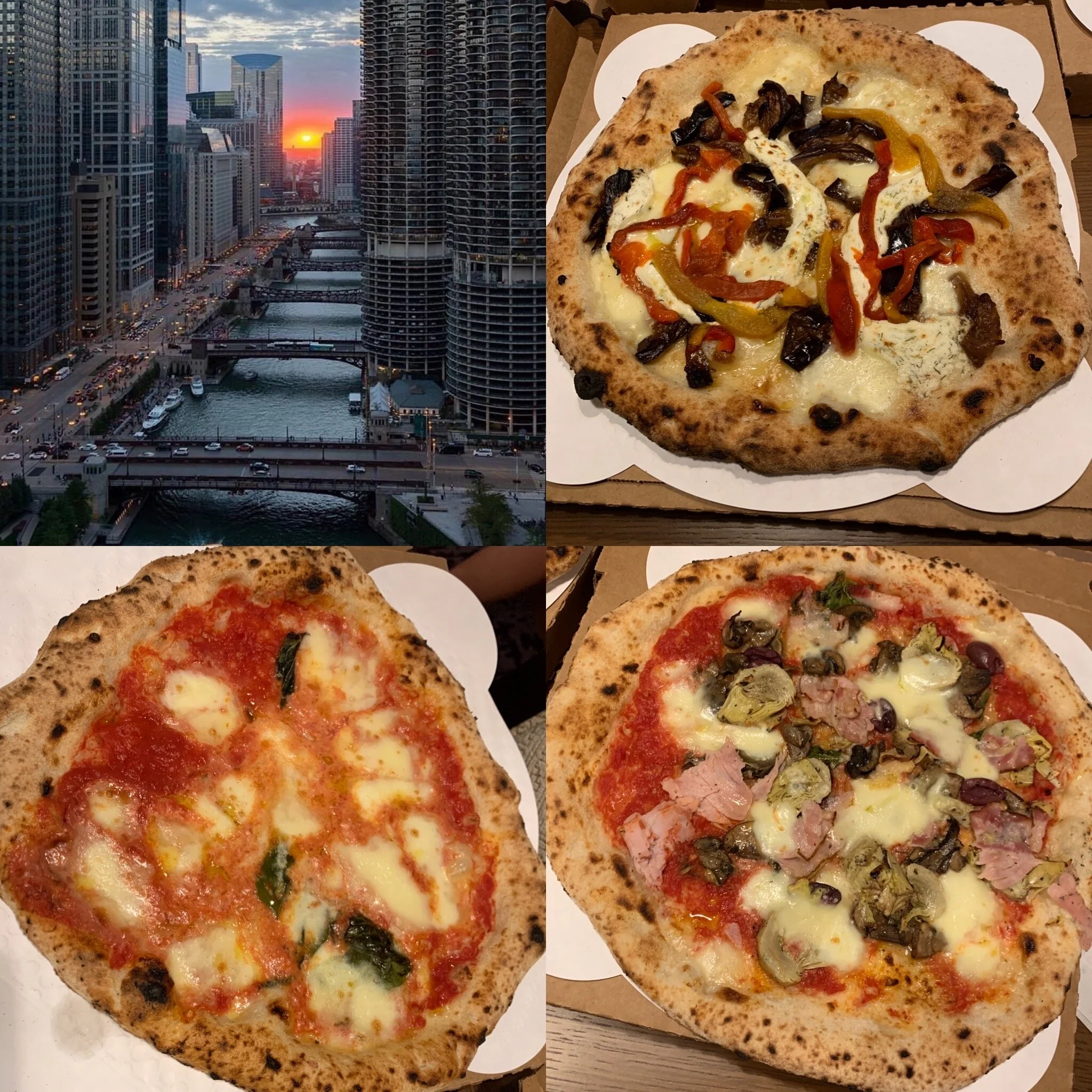 We entered Chicago just before sunset. Our first order of business was to grab some take out dinner to bring to our hotel suite so we could spend the evening unwinding without interruption. Of course for the boys we had to get classic Chicago hot dogs with a side of fries and for all of us, I needed one more pizza fix.