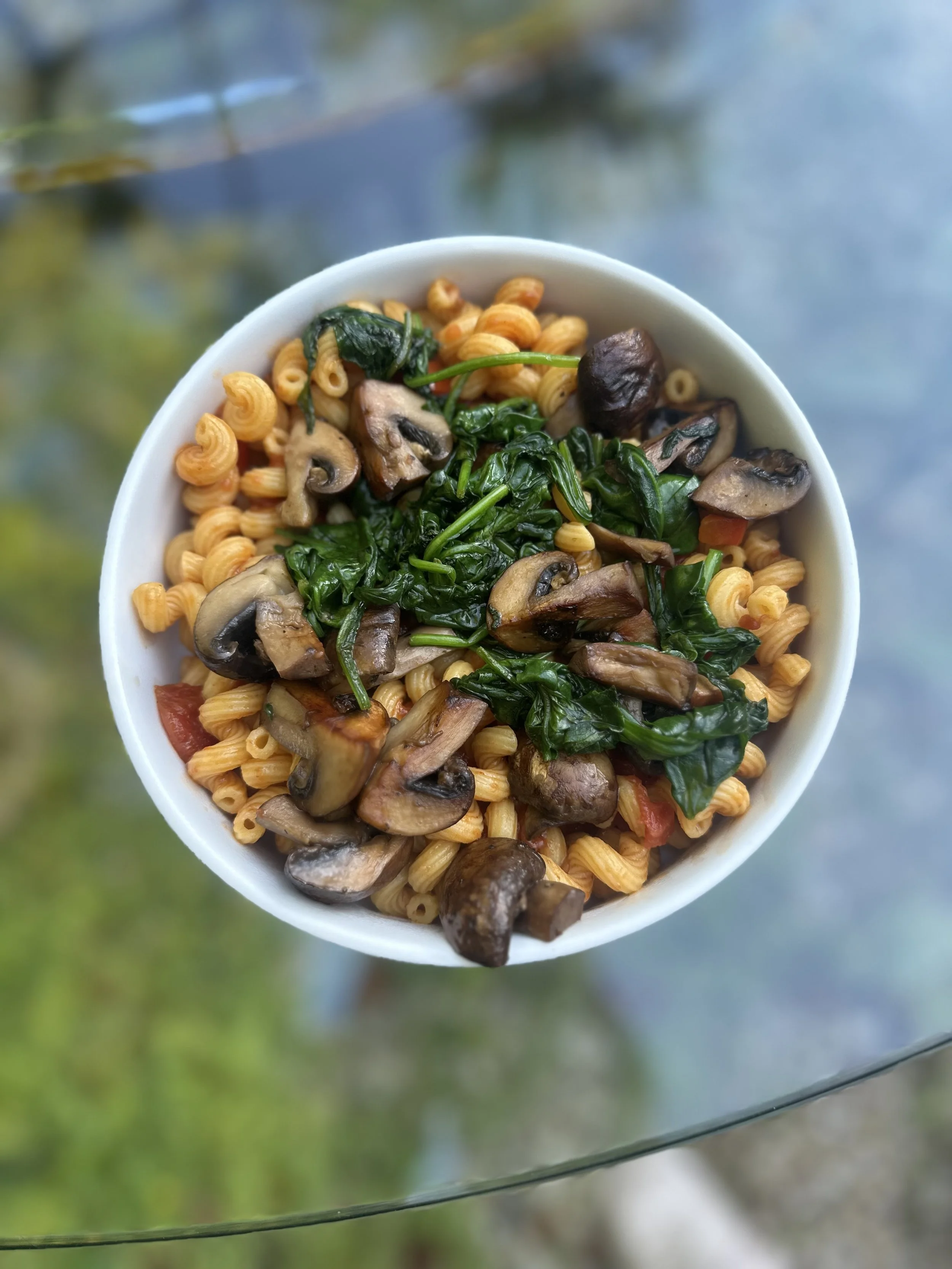 To balance the sweetness of the peppers and tomatoes, we add earthy sautéed mushrooms and fresh spinach, creating layers of texture and color while boosting the nutrient content. The mushrooms bring umami richness, while the spinach wilts down into the pasta, adding a vibrant green touch and a dose of vitamins.
