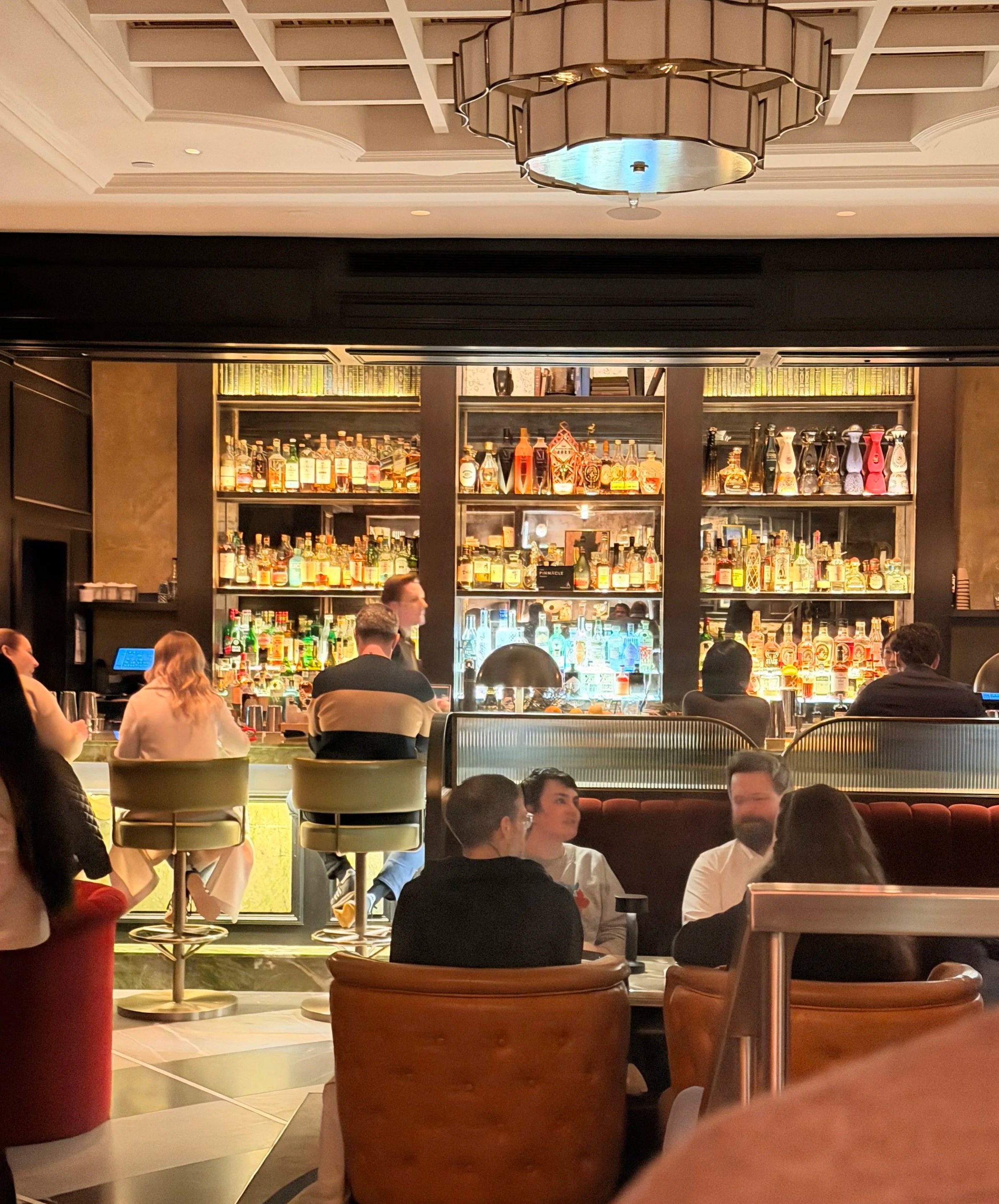 Tucked inside the storied walls of the Fairmont Royal York, The Library Bar offers an experience that feels both timeless and quietly indulgent—exactly what we were craving after a full day exploring Toronto. Staying at the hotel made the transition from city energy to intimate elegance effortless; just steps from our room, we found ourselves slipping into a space defined by warm wood, soft lighting, and a sense of old-world charm.