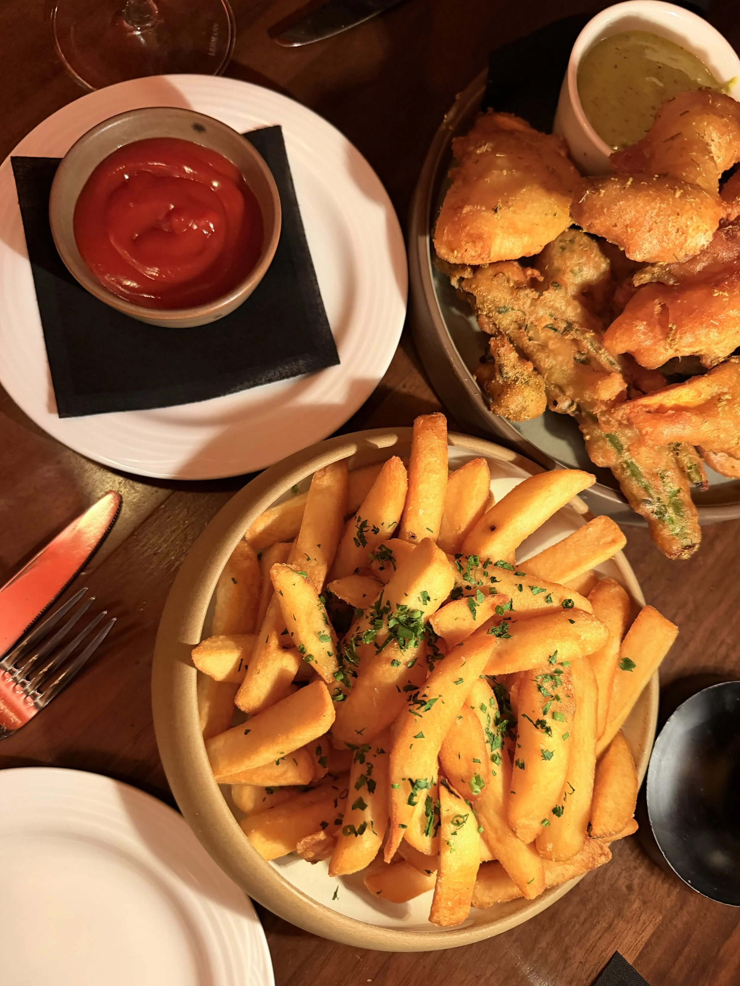 We began with the Harvest Vegetable Fritto, a beautifully composed dish featuring sweet potatoes, king oyster mushrooms, butternut squash, broccolini, and fennel. Lightly crisped and perfectly seasoned, each vegetable retained its distinct character, while the tahini dip added a creamy, nutty richness that tied everything together. It felt both indulgent and vibrant—comforting yet refined.