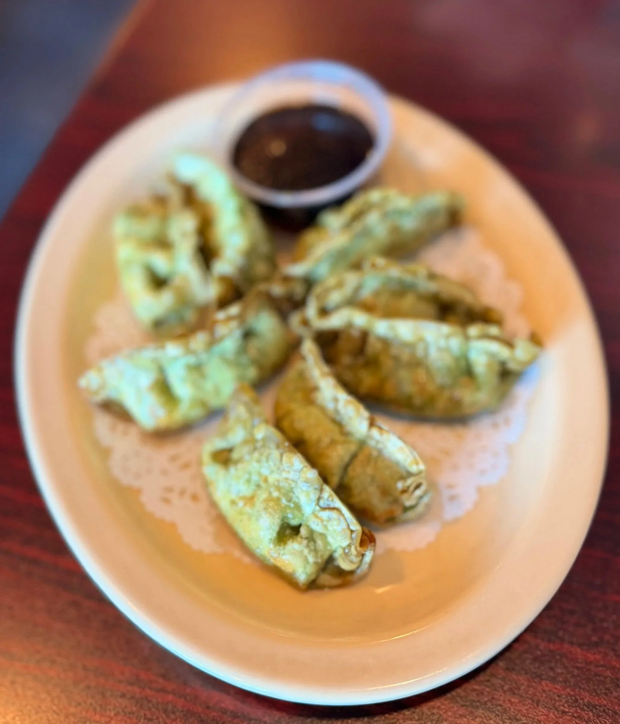 Golden and crisp on the outside, these vegan Sủi Cảo dumplings deliver the perfect bite. Each delicate wrapper gives way to a savory vegetable filling, warm and aromatic with hints of garlic, scallion, and sesame. What truly elevates the dish is the homemade tangy ginger soy sauce—bright, salty, and just a touch zesty—clinging to every fold. Dipped generously, each dumpling balances crunch with tenderness, richness with acidity. It’s the kind of starter you intend to share but quickly reconsider, savoring one after another while they’re still hot, each bite more irresistible than the last.