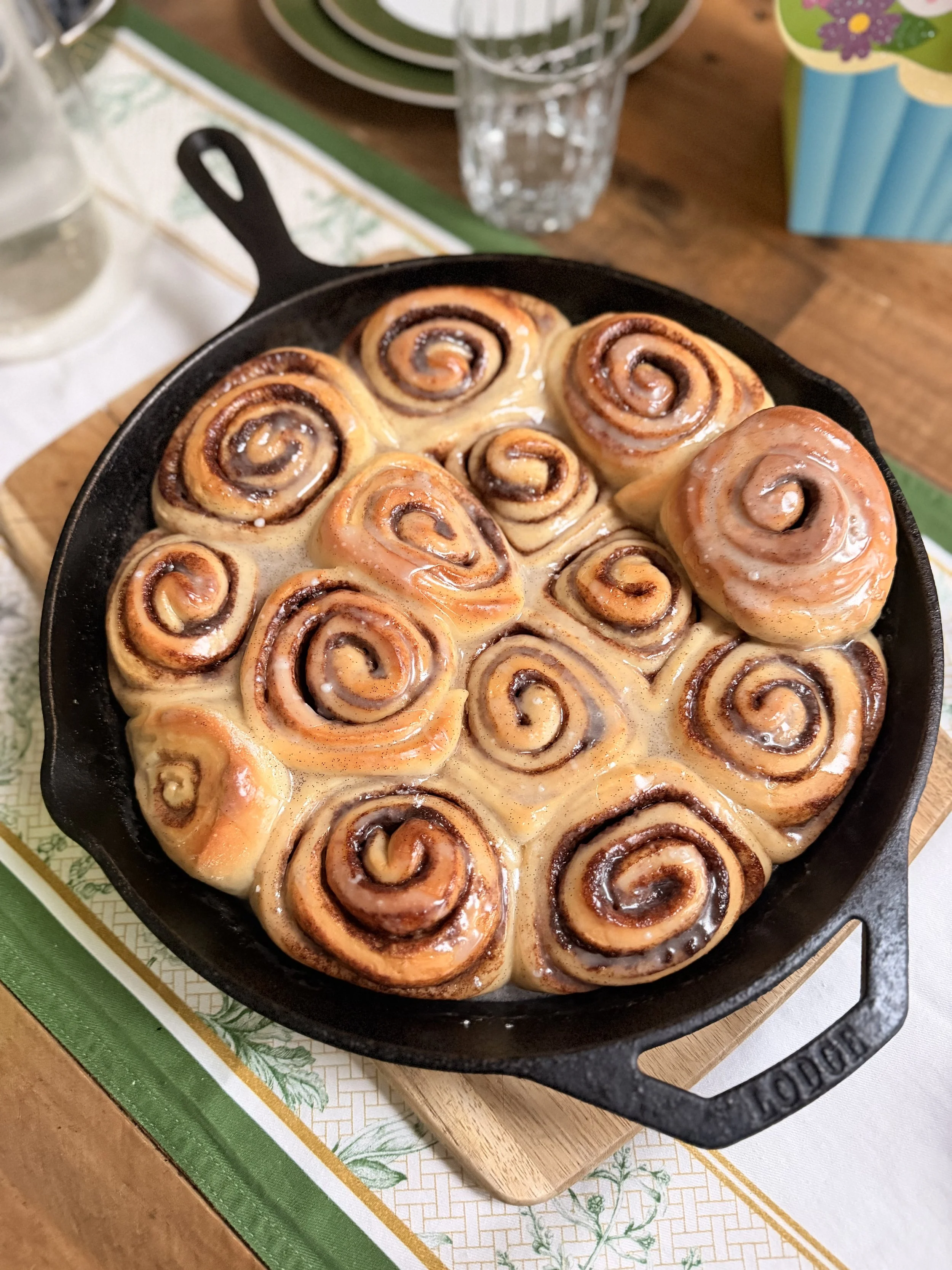 For extra gooey centers, pour a splash of plant milk over the rolls before baking.