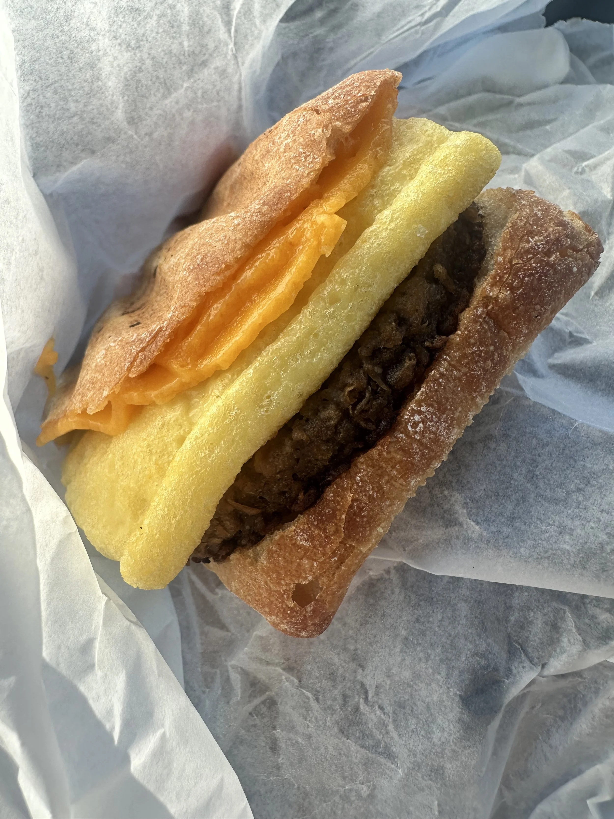 Weekend tournaments and early morning practices mean breakfast on the road is practically a ritual now, and Hampton Coffee’s vegan breakfast sandwich is one of the best quick plant-based breakfast options around. It comes with vegan egg, cheese, and sausage—comforting, savory, and the kind of warm handheld breakfast you crave on cold East End mornings.
