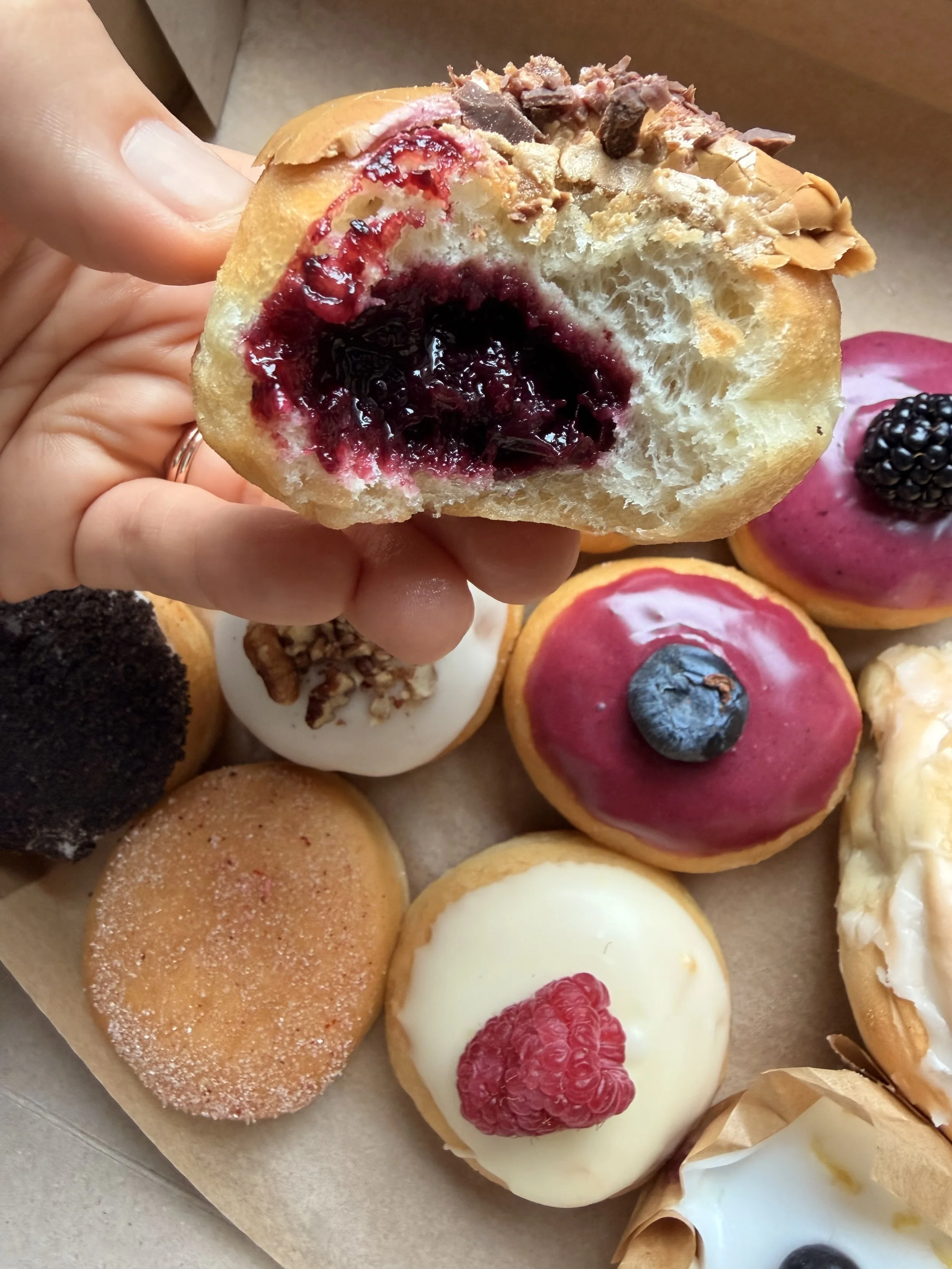 For our 16-year-old, we ordered the Apple Pie donut, and it was an absolute hit. He, usually skeptical of vegan pastries, took one bite and couldn’t believe it was vegan. The cinnamon-spiced apple filling was perfectly balanced with a tender, pillowy donut, while the subtle glaze added just the right touch of sweetness. Each bite was comforting and flavorful, leaving him genuinely impressed and happily reconsidering his vegan pastry assumptions.