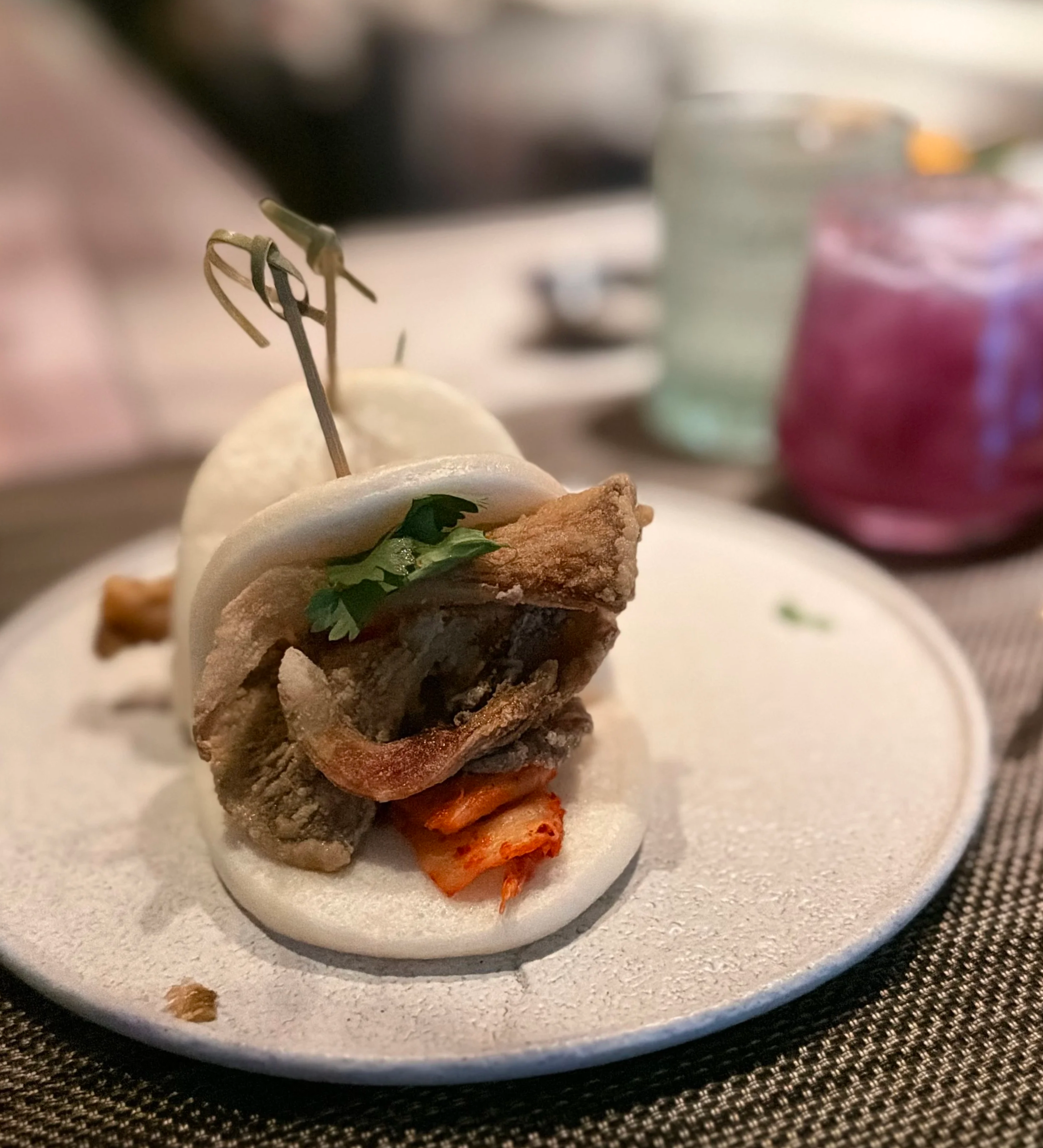 To round out the meal, I ordered the Kimchi Baos, filled with chick’n fried mushrooms, gochujang, and pickles. If the sushi was elegant and composed, the baos were playful and unapologetically bold.