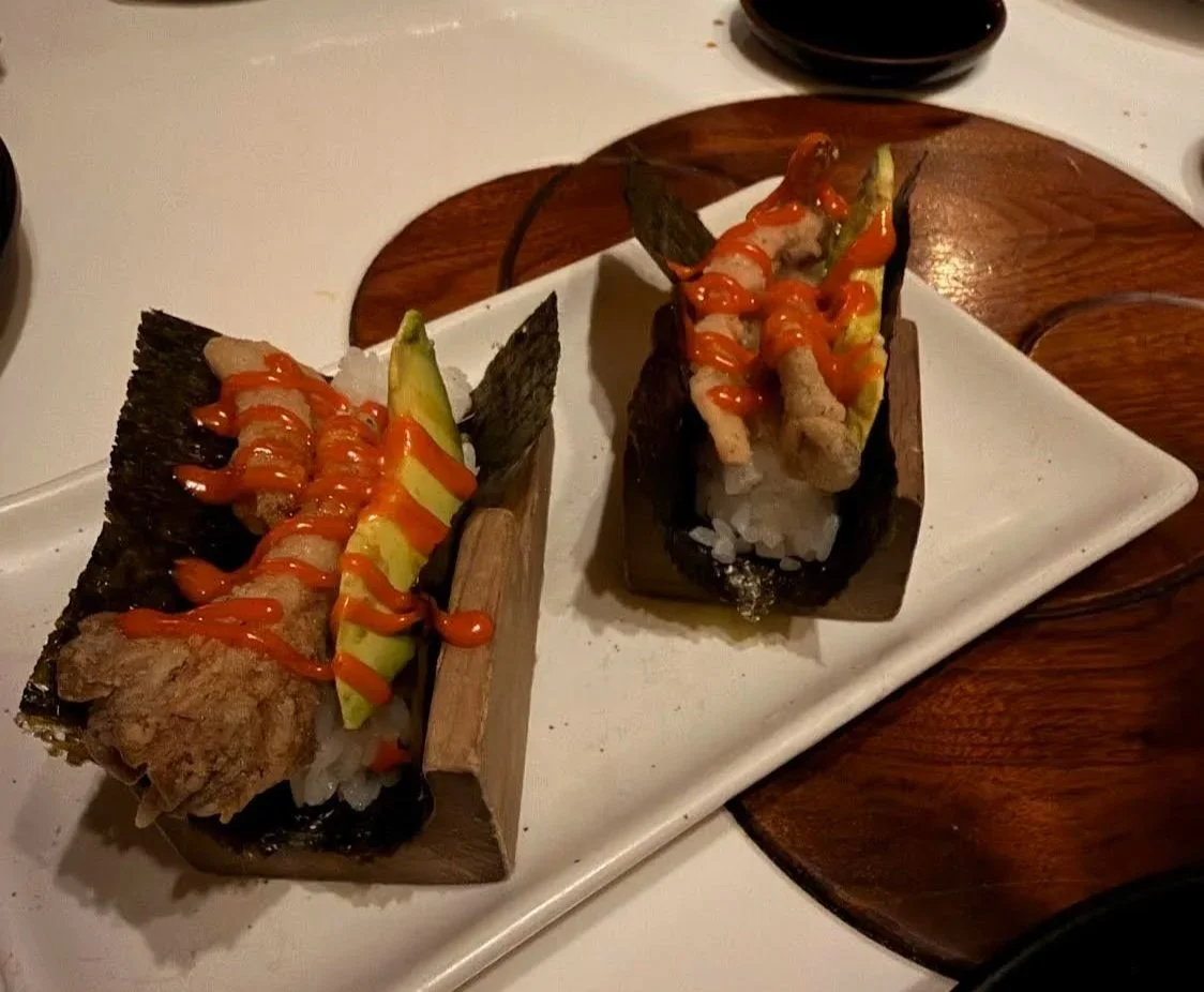 The Crispy Mushroom Hand Rolls were easily one of our favorite bites of the evening—playful, flavorful, and incredibly satisfying. Each roll was perfectly composed, with crispy mushrooms delivering a savory, almost meaty bite that contrasted beautifully with the creamy avocado. The wasabi added a gentle heat, while the gochujang brought a touch of sweet spice that lingered on the palate. Bright pops of pickled ginger cut through the richness, keeping each bite fresh and balanced. The unagi-style glaze tied everything together with its signature sweet-salty depth, giving the roll that nostalgic sushi flavor profile in a completely plant-based form. Wrapped in crisp nori, every element came together in a harmonious, handheld bite that felt both indulgent and thoughtfully crafted. It’s the kind of dish that showcases just how exciting and refined vegan sushi can be.