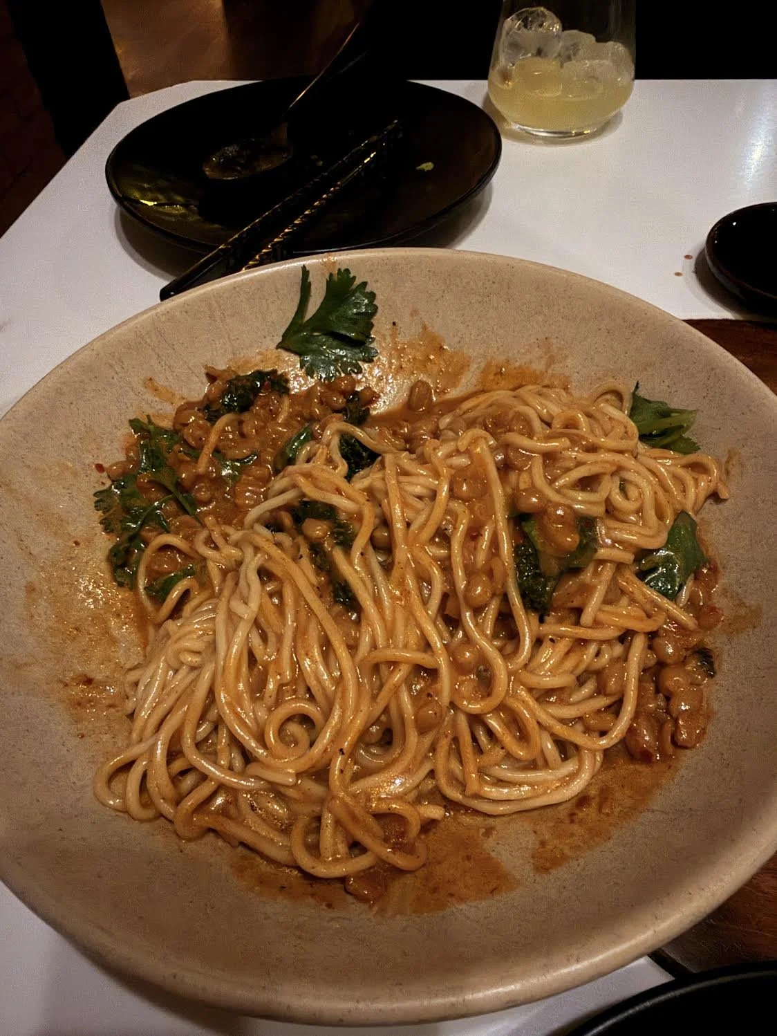 The Dan Dan Noodles were pure comfort—rich, warming, and deeply satisfying. The szechuan-spiced kamut noodles had a wonderful chew, soaking up a luscious coconut milk sauce that was both creamy and complex. Layers of sesame added a nutty depth, while the gentle heat from the spices built slowly, creating that signature Dan Dan warmth without overpowering the dish. Fresh cilantro brought a bright, herbaceous lift that balanced the richness beautifully. Each bite felt cozy and indulgent, with flavors that lingered in the most comforting way. It’s the kind of dish that wraps you up, especially on a chilly evening, delivering both bold flavor and a sense of familiarity in every forkful.