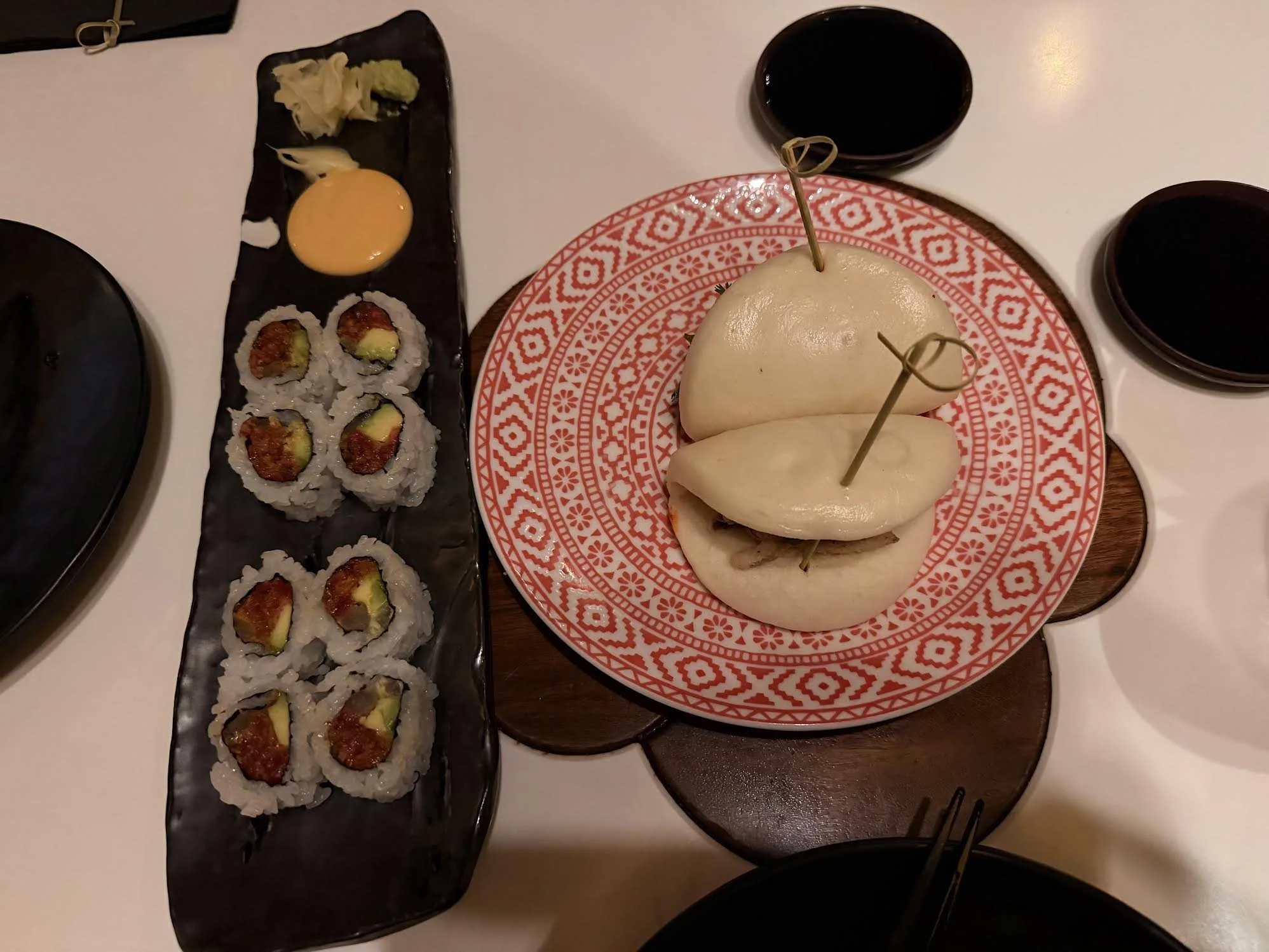 The Kimchi Baos were an absolute highlight—bold, comforting, and packed with flavor. Pillowy soft buns cradled crispy chick’n fried mushrooms, delivering that perfect contrast between light and crunchy. The gochujang added a deep, spicy-sweet heat that lingered just enough, while the tangy pickles cut through the richness with a bright, refreshing bite. Each element worked in harmony, creating a beautifully balanced mouthful that felt indulgent yet vibrant. The subtle funk of the kimchi tied everything together, elevating the dish with its signature depth. It’s the kind of bite you keep thinking about long after the meal ends.
