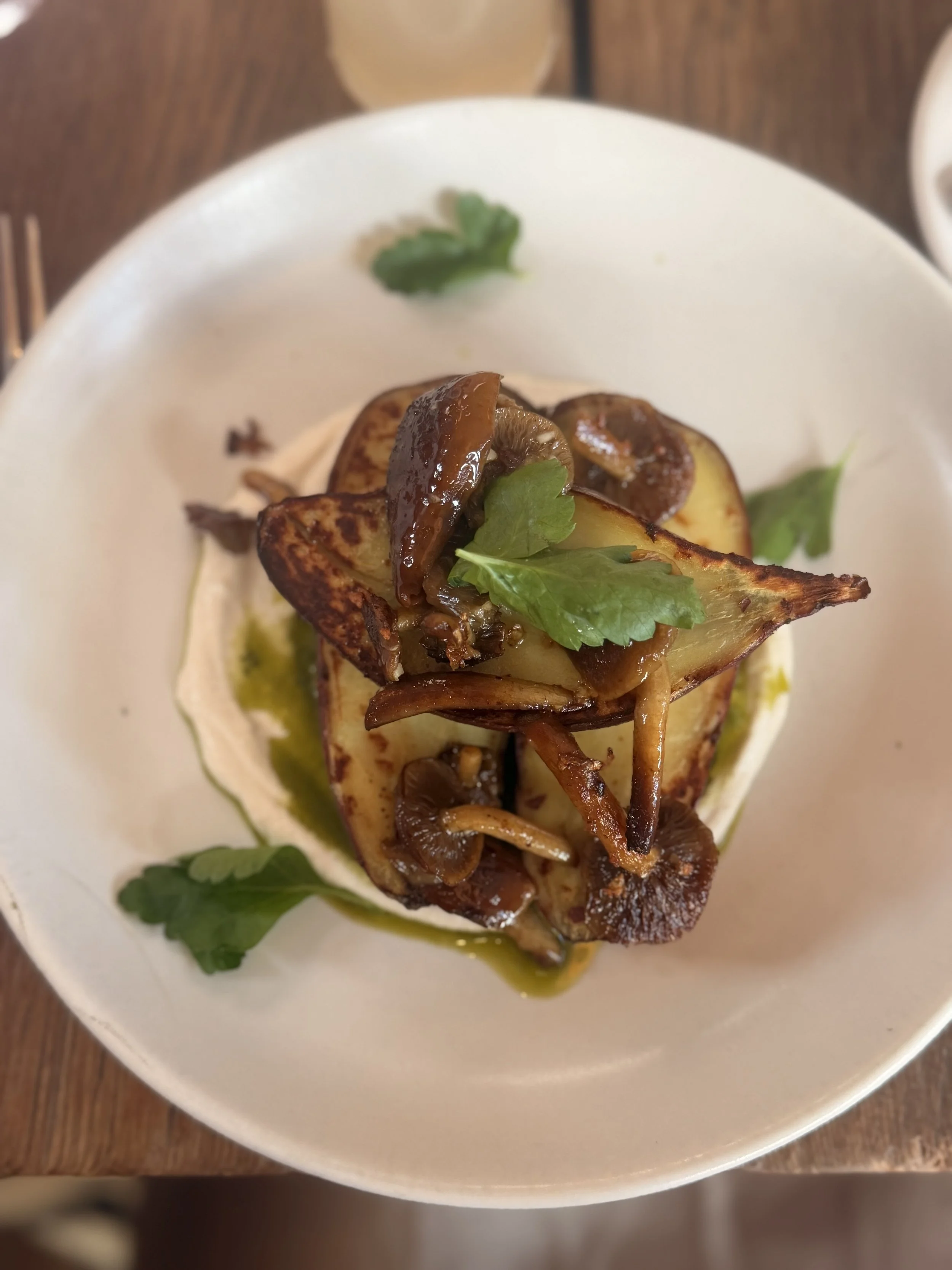 The confit local mushrooms are the real scene-stealers: deeply savory, silky, and rich in that slow-cooked way that tastes like someone took their time on purpose. They bring an earthy depth that plays beautifully against the sweet potato, creating that sweet-meets-umami balance that’s so satisfying first thing in the morning.