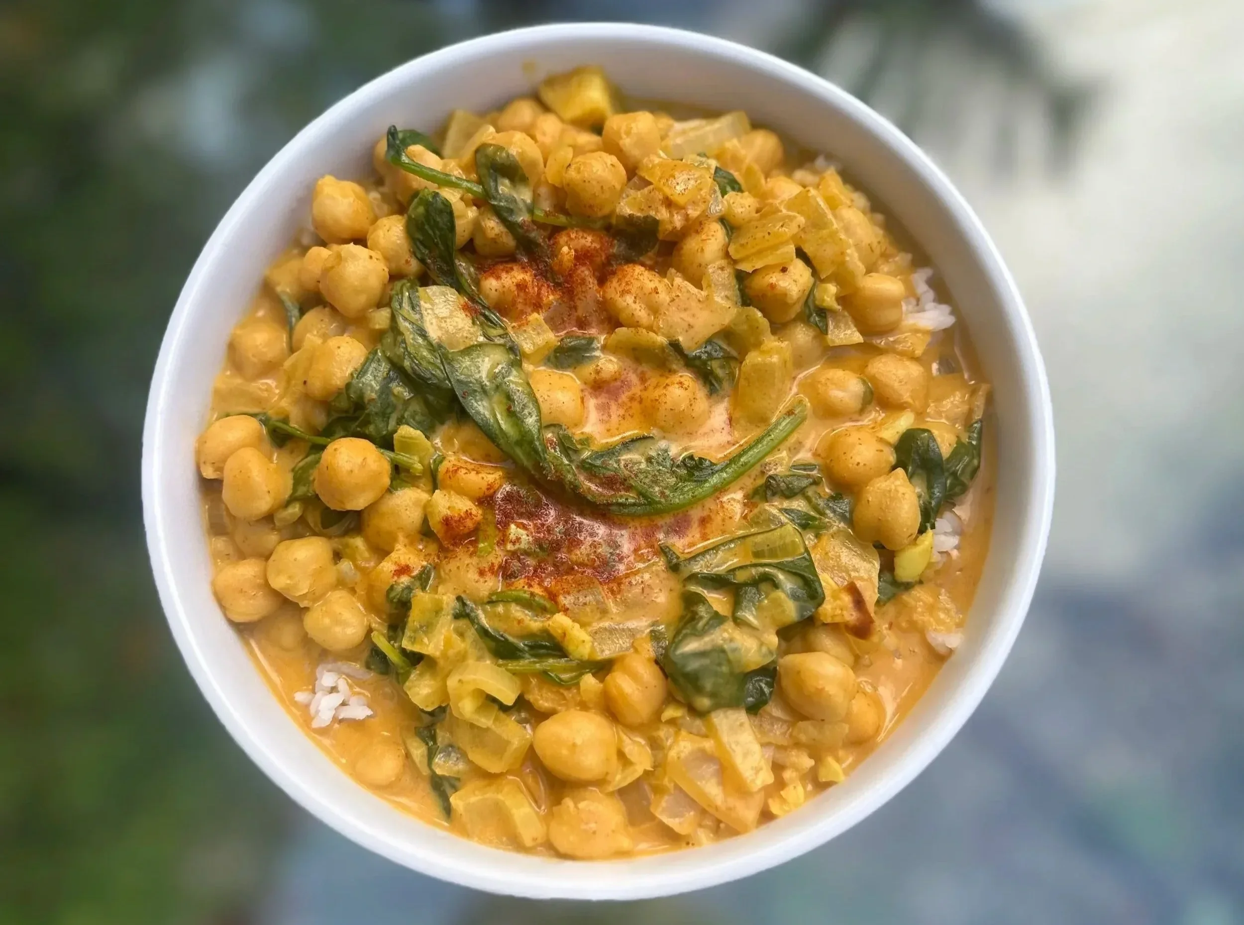 Dinner: Vegan curry with coconut milk, vegetables, and basmati rice